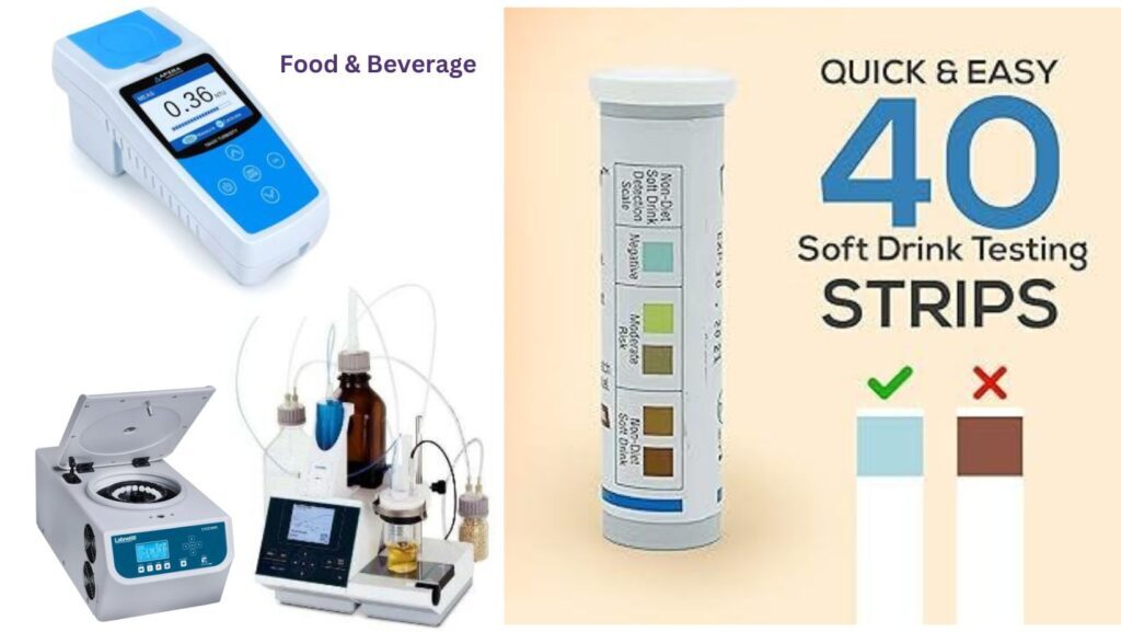 Turbidimeter, food hygiene test strips, LICO spectrophotometers, colorimeters, aflatoxin and allergen test kits, BOD and respirometers, vortex mixers, centrifuges, liquid handling material, autotitrators, lab shakers, cooking oil testers, IR thermometers, centrifuge and centrifuge tubes, petri dishes, solvent extractors.